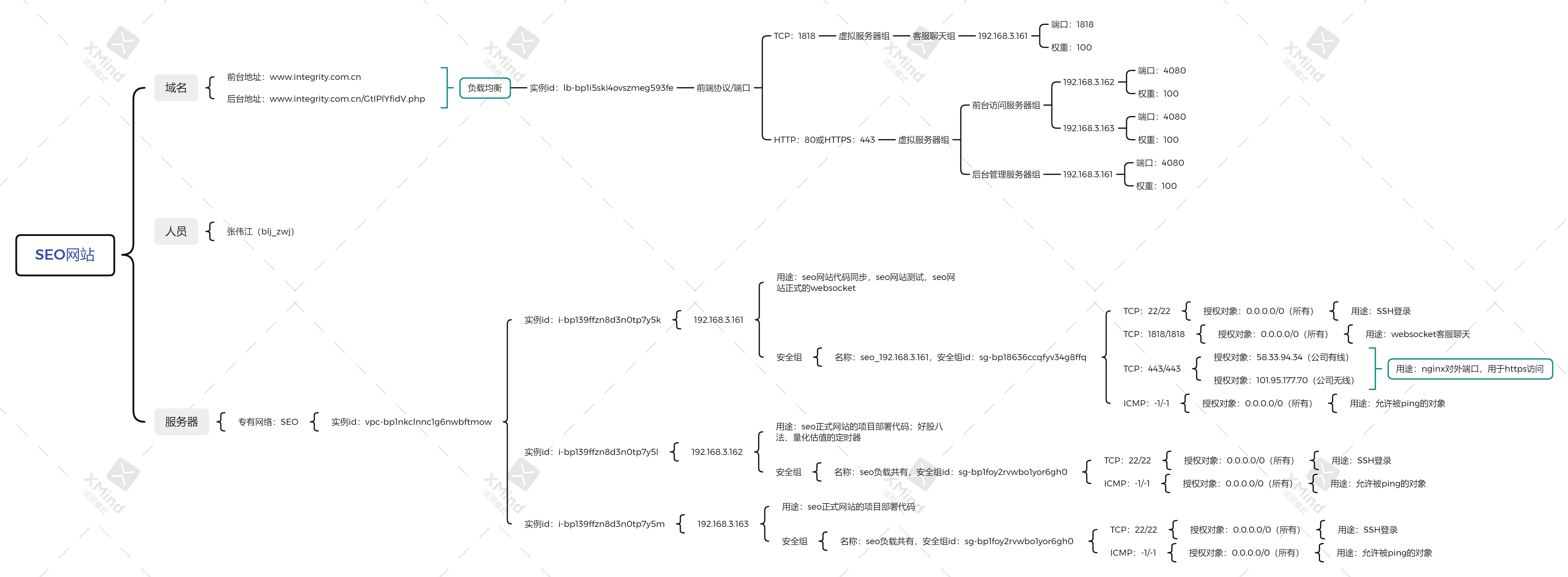 1、对seo网站的服务器安全组之类的进行整理,画相关的xmid图。如下: