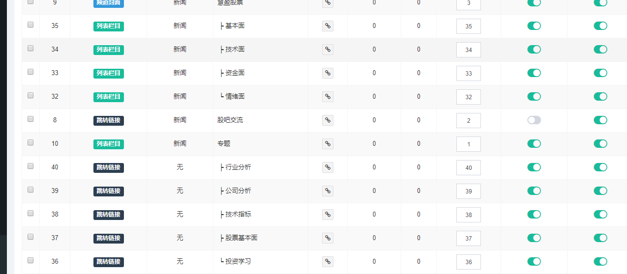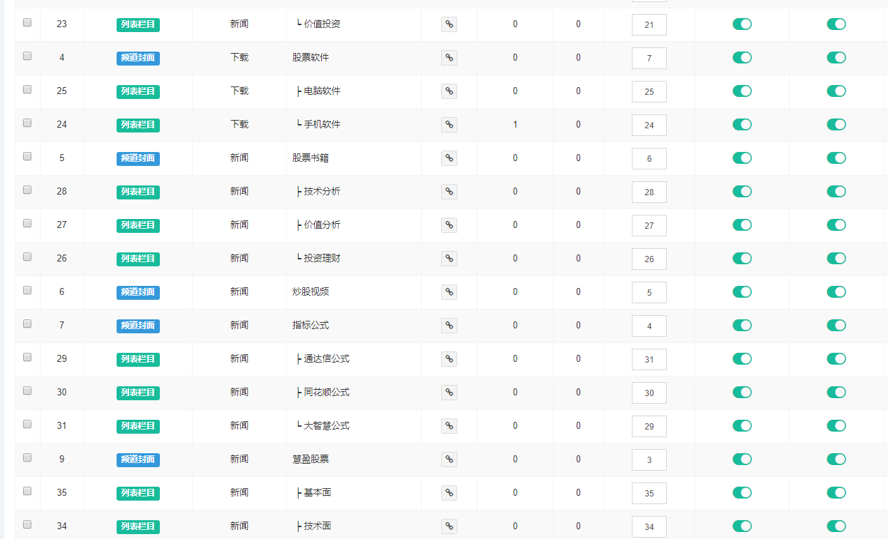 2、慧盈股票pc网站栏目的添加以及功能完善。