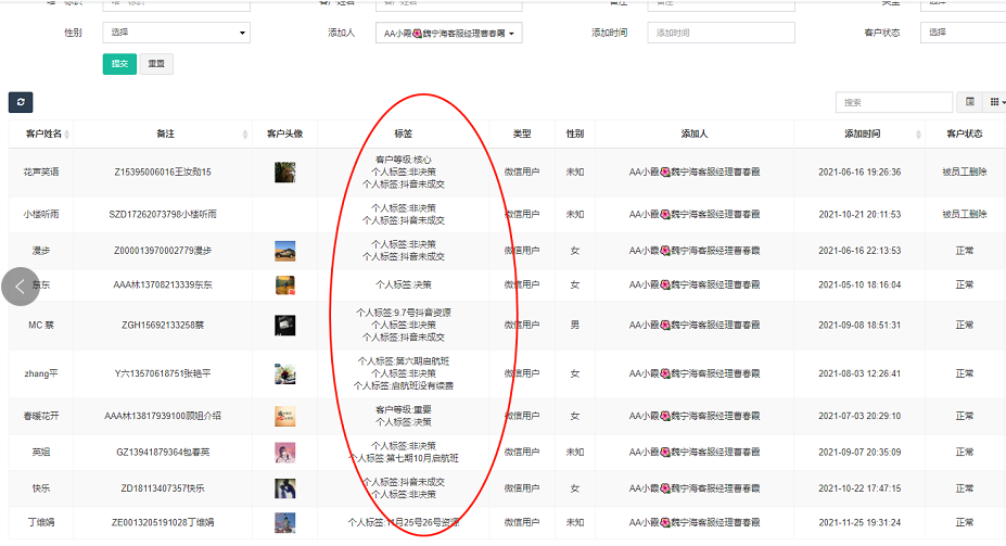 1、企业微信会话存档的客户列表增加标签显示。